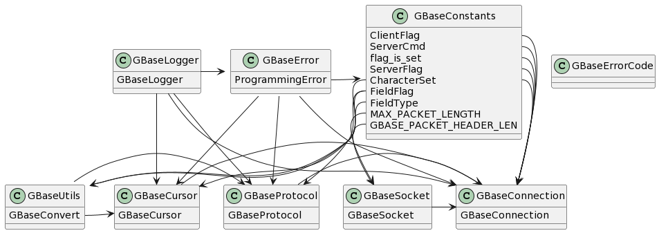 GBaseConstants 为常量类,定义客户端标记、字符集等。引用了 GBaseError 模块。