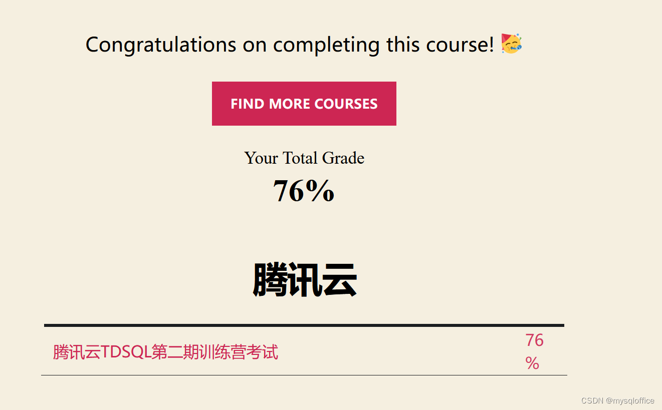 本月参加了腾讯云TDSQL第二期训练营结营,并顺利通过考试,以此文纪念训练营顺利结营。